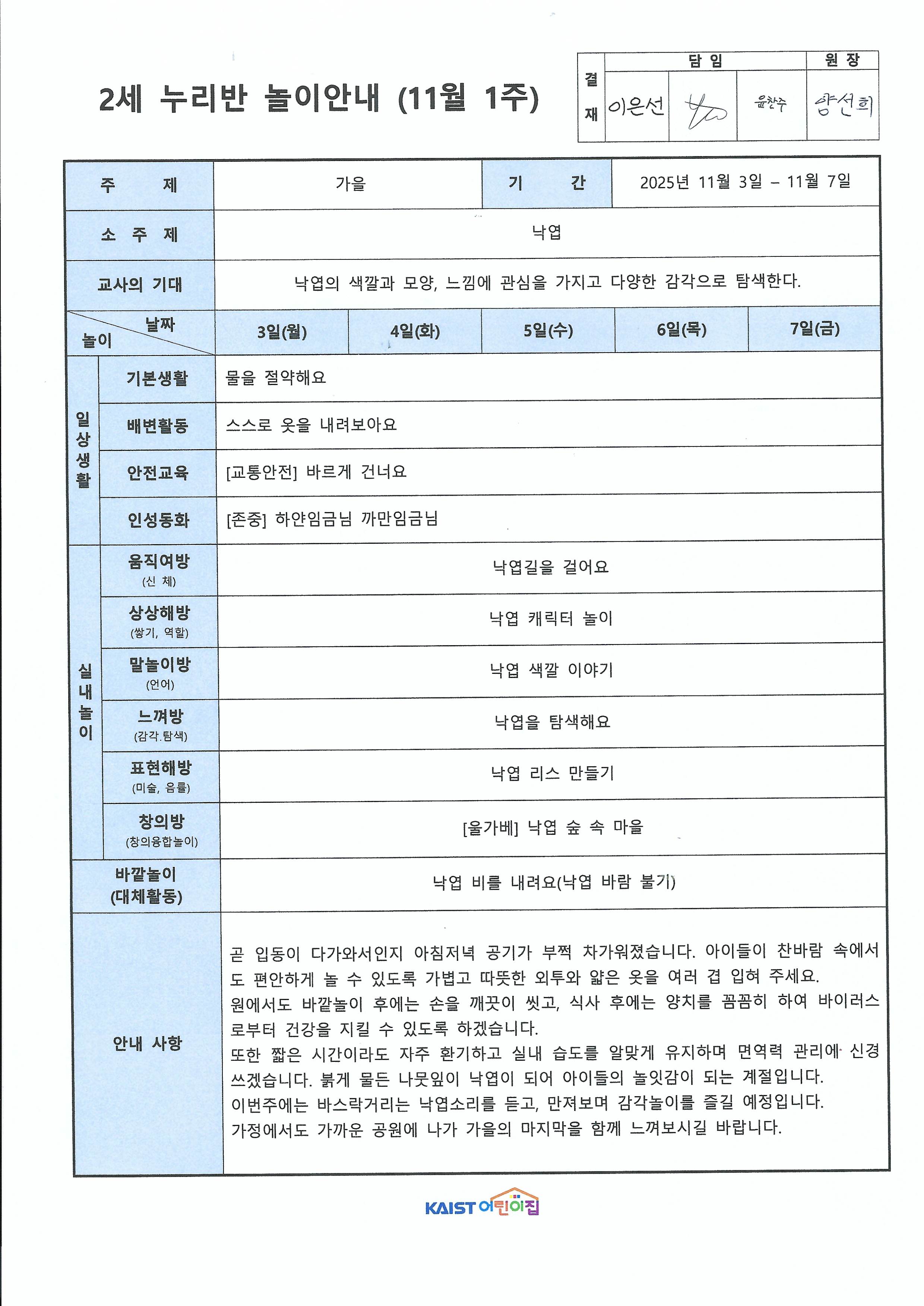 11월 1주 놀이안내