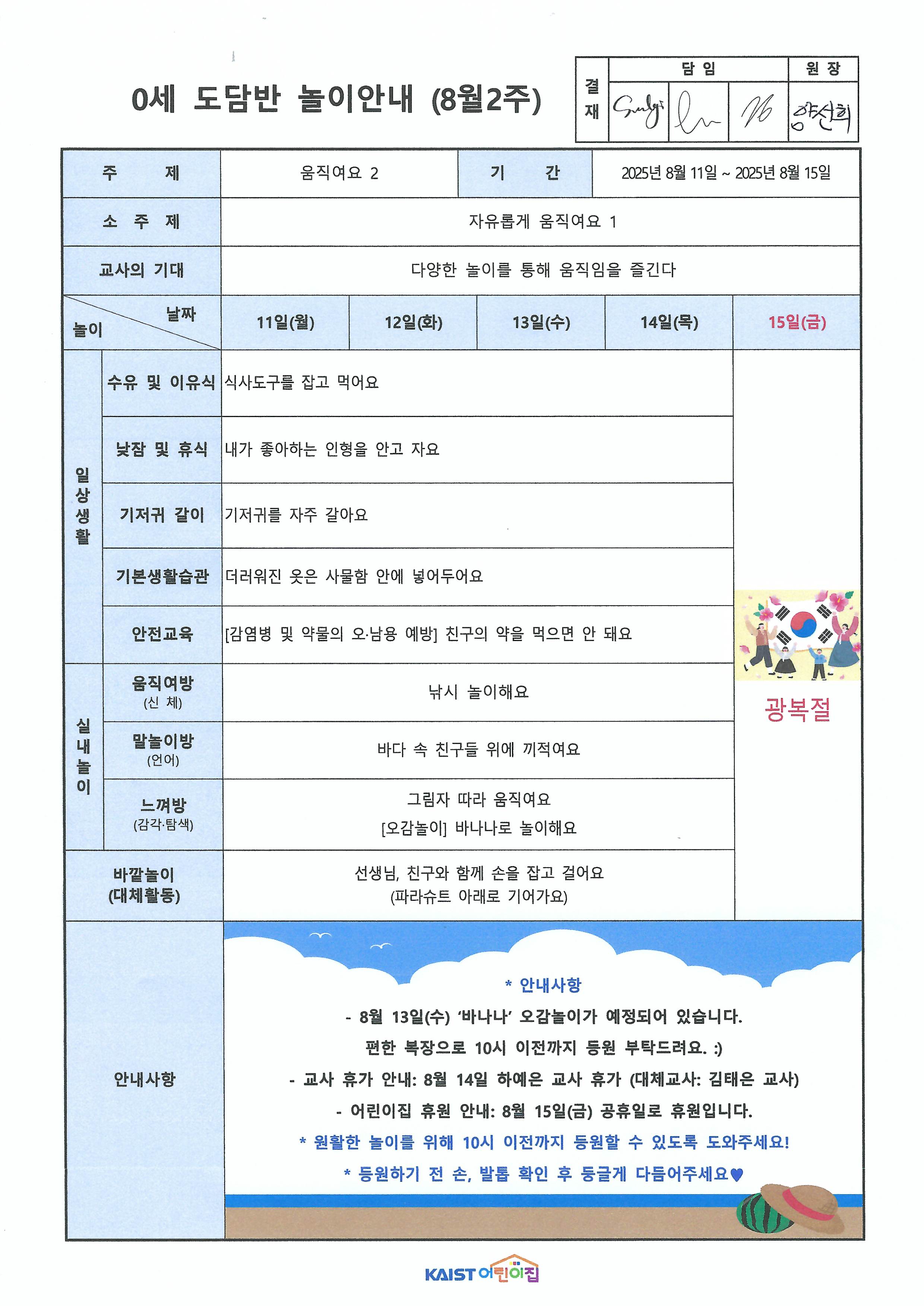 8월 2주 놀이안내