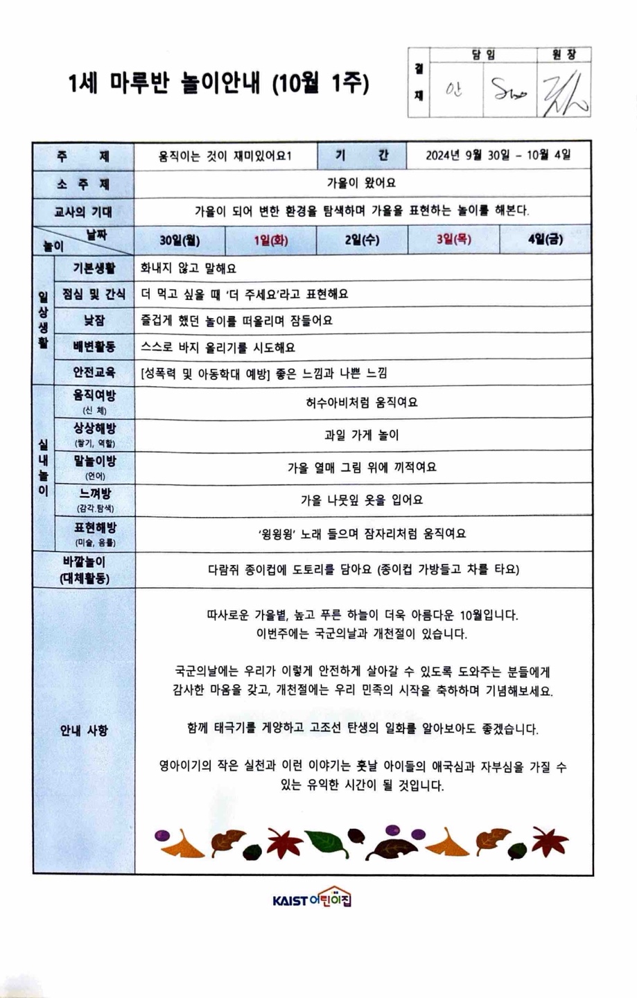 10월1주 놀이안내입니다:)