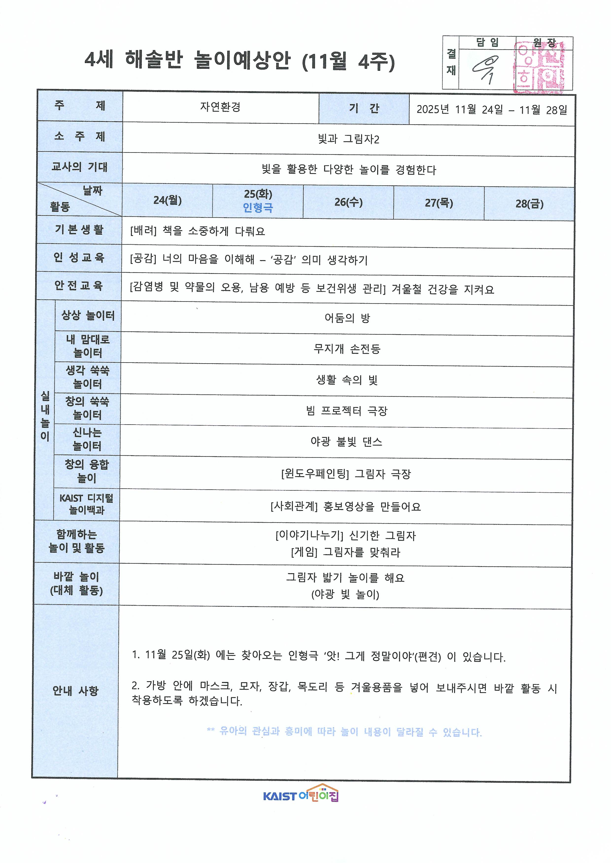 11월 4주 놀이예상안