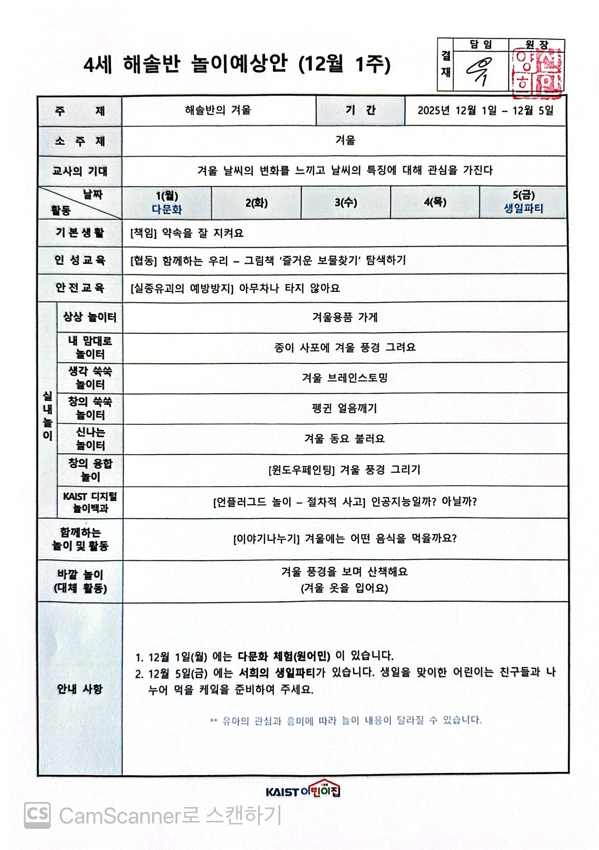 12월 1주 놀이예상안