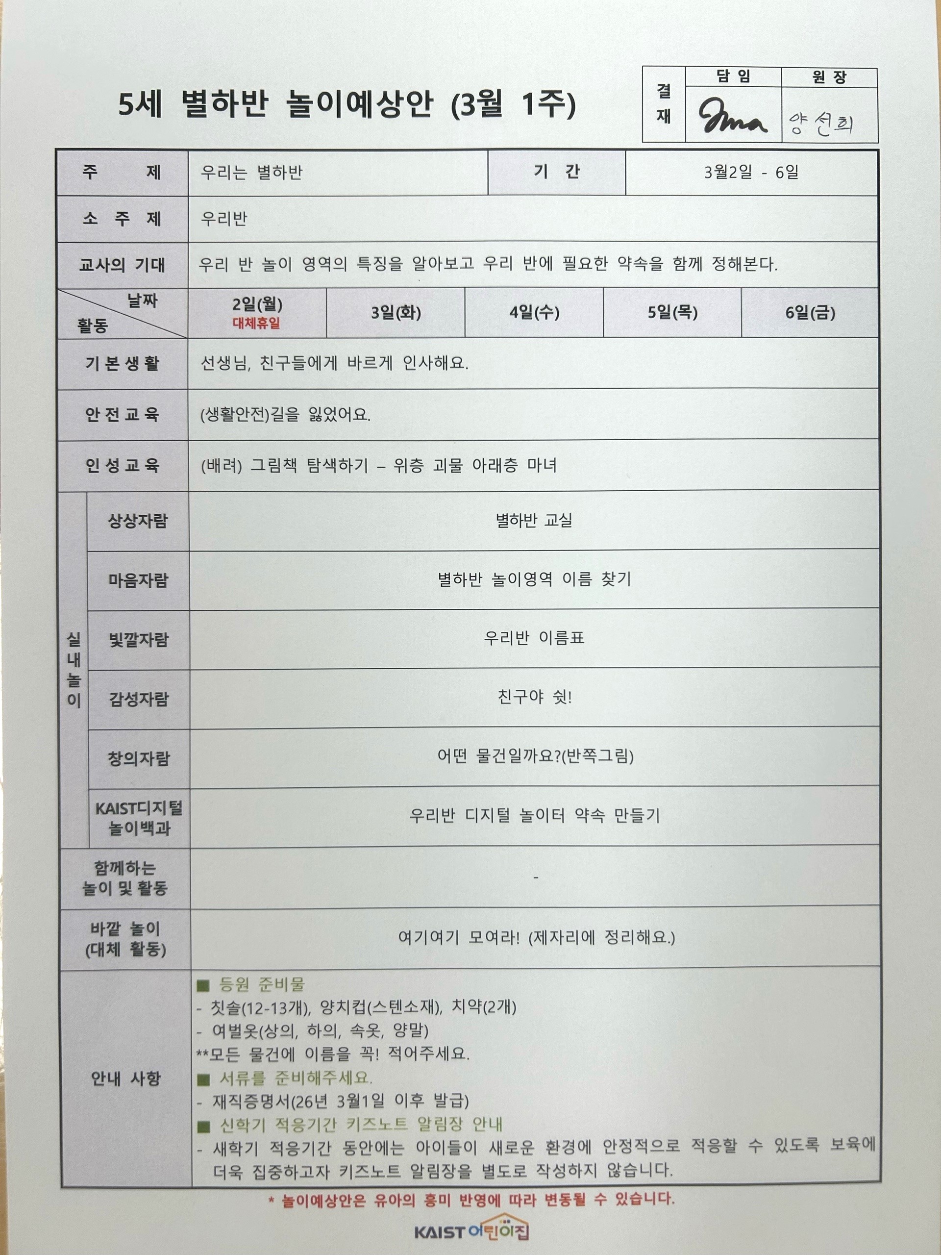 26학년도 3월 1주 놀이예상안