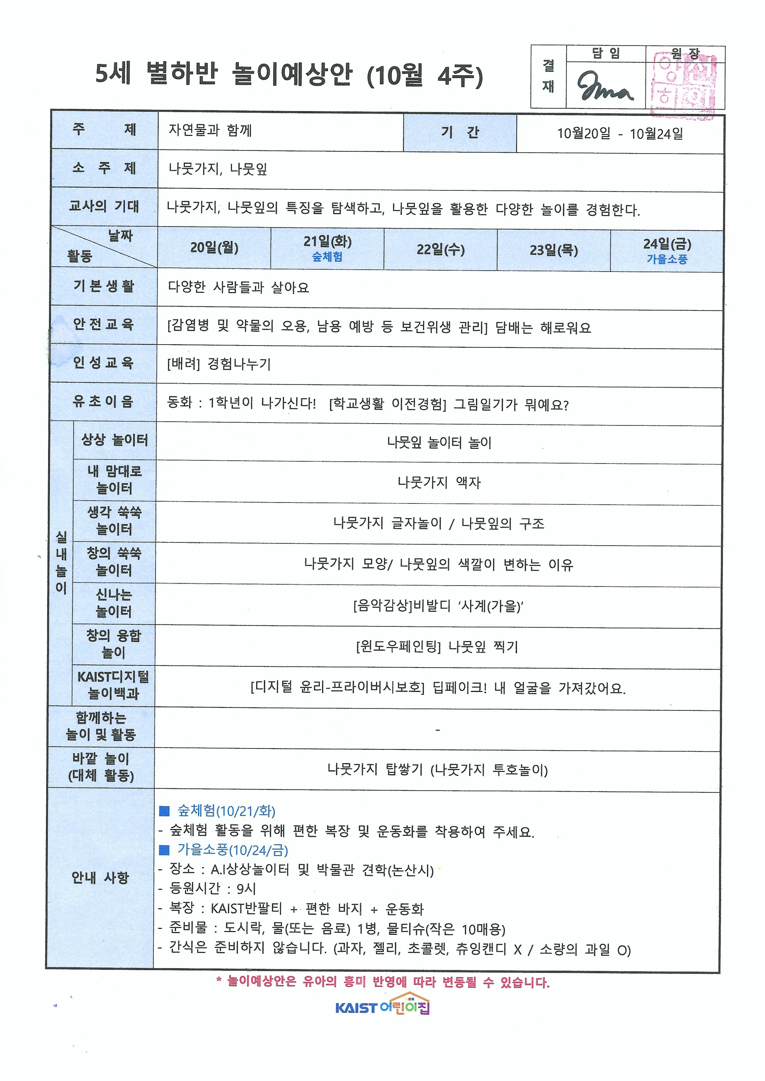 10월 4주 놀이예상안