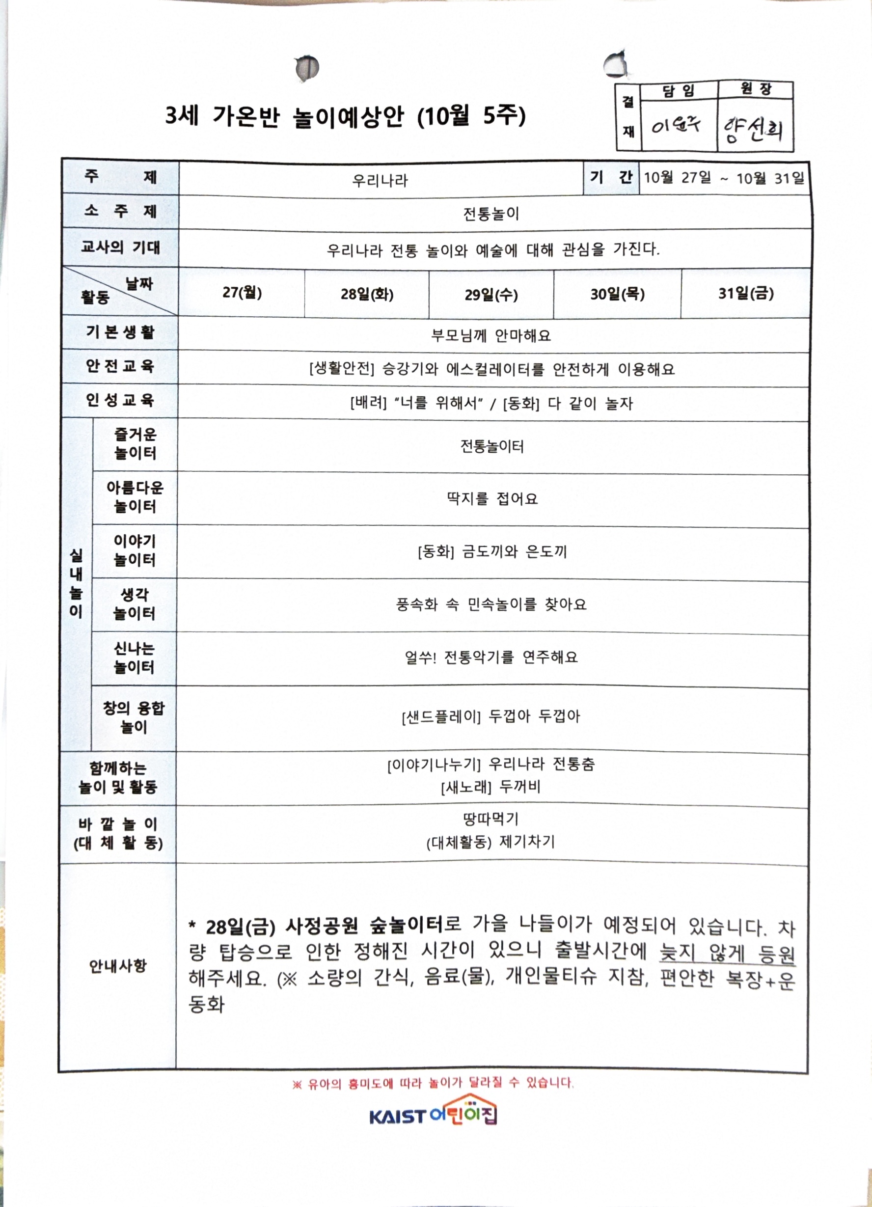 10월 5주 놀이안내